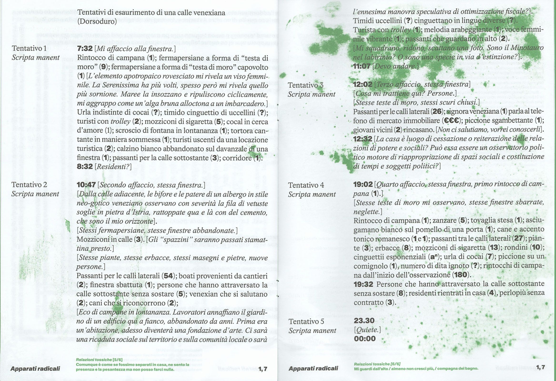 Contributions by: Tommaso Guariento, Federica Timeto, Monica Nadegger, Isabella Pinto, Silvia Biasetton, Andreas Philippopoulos- Mihalopoulos, Roberto D’Alba, Lucilla Barchetta, Giulia Barison, Guilherme Pratti, Clelia Cadamuro, HAB (Melissa Grant, Heidi Pietarinen, Noora Sandgren, Anne Yoncha), Eléonore Geissler, boglárka lutz, Tocia!, Laura Hyunjhee Kim, Kevin Sweet, Faid Ahmad, Georgia Jamieson, Ilya Martynov, Katie Pelikan Baselj, Elisa Piazzi, Aleksandra Przybysz