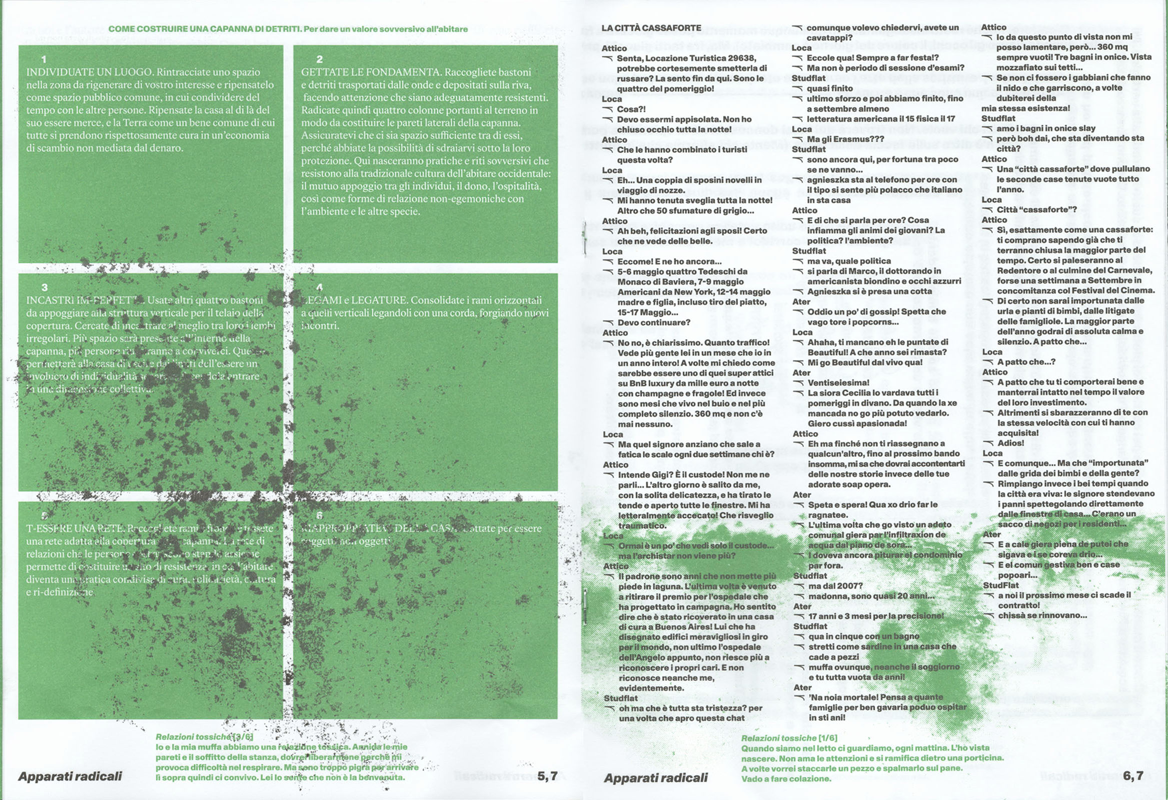 La Masterclass Apparati Radicali è stata condotta dalla ricercatrice, autrice ed editor Noemi Biasetton, in collaborazione con OCIO (Osservatorio CIvicO sulla casa e la residenzialità) e bruno, studio di grafica. In occasione della restituzione dei risultati della Masterclass, il Teatrino di Palazzo Grassi ha ospitato, lunedì 16 giugno, un incontro aperto al pubblico con Noemi Biasetton e Dafne Boggeri, artista multidisciplinare.