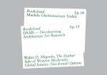 Ep. 13 DAAR — Decolonizing Architecture Art Research with The Darker Side of Western Modernity by Walter D. Mignolo (Duke University Press, 2011);