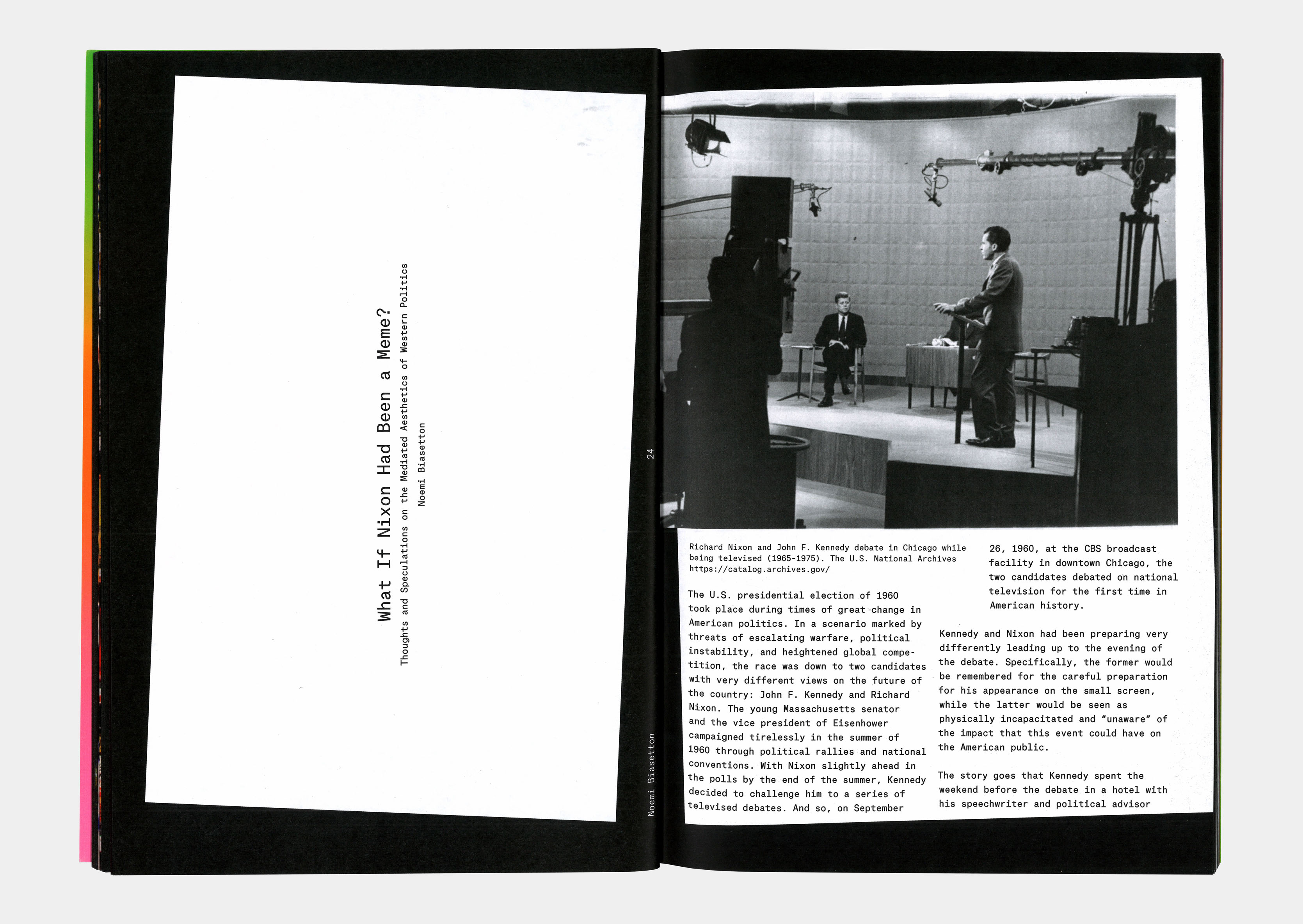 In questa conversazione, la graphic designer e studiosa Silvia Sfligiotti dialoga con la ricercatrice, scrittrice ed editor Noemi Biasetton per esplorare il rapporto tra media, design e politica: dal linguaggio grafico dei movimenti controculturali alle forme in cui oggi la politica si mescola all’intrattenimento e alla comunicazione attraverso algoritmi, meme e realtà alternative.