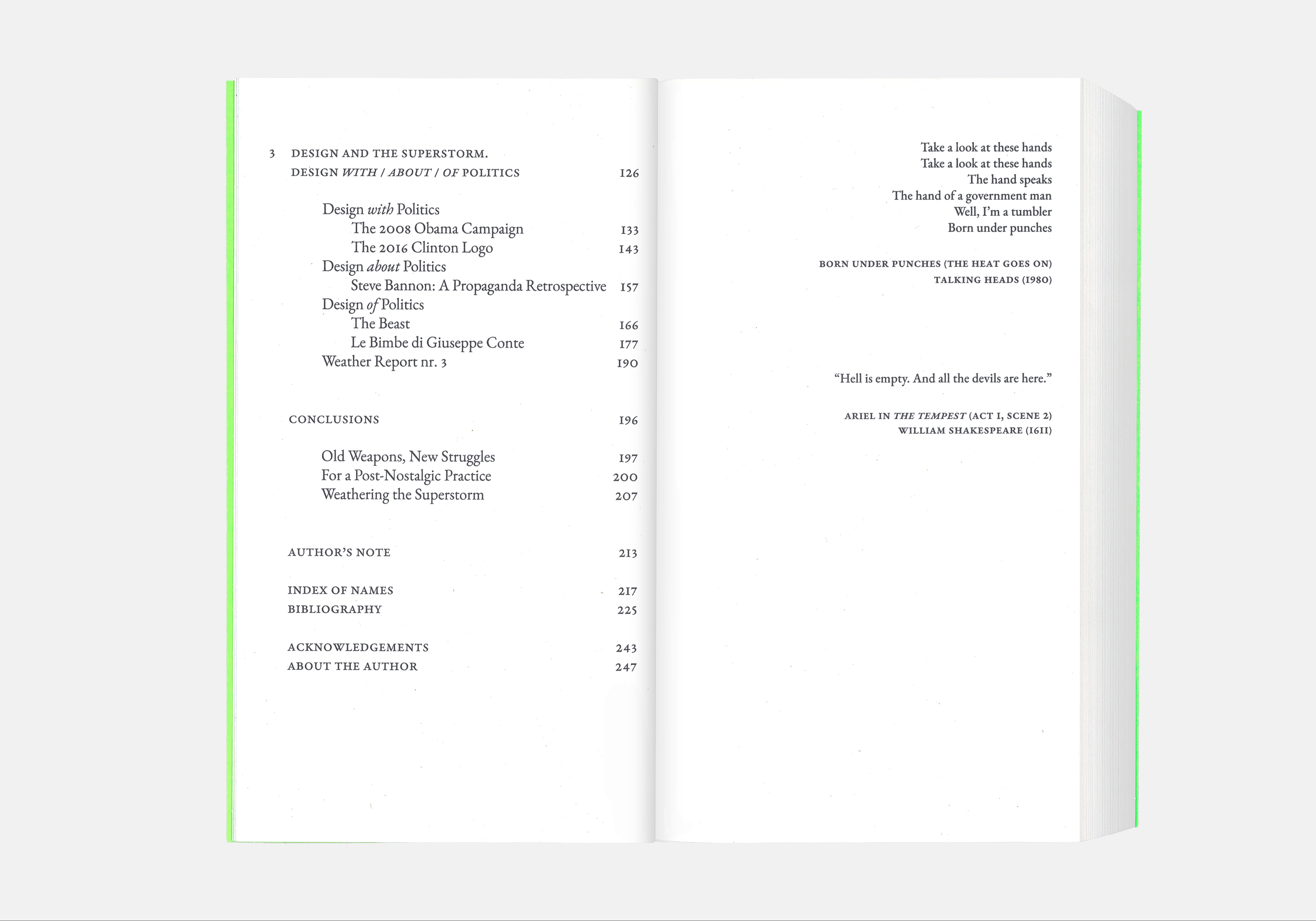 As politicians refine marketing techniques applied to the electorate and online users become political trendsetters, designers face an impasse. But not all is lost in the Superstorm. Surprisingly, it might precisely be this uncertain future that holds the key for designers to question and reformulate their role and purpose within the political sphere.
